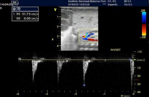 El ultrasonido Doppler es una técnica de imagen que utiliza ondas sonoras para evaluar el flujo sanguíneo en los vasos sanguíneos. El ultrasonido Doppler puede mostrar el movimiento de la sangre al medir las ondas sonoras reflejadas por los glóbulos rojos en movimiento, un fenómeno conocido como el efecto Doppler.[1-2]