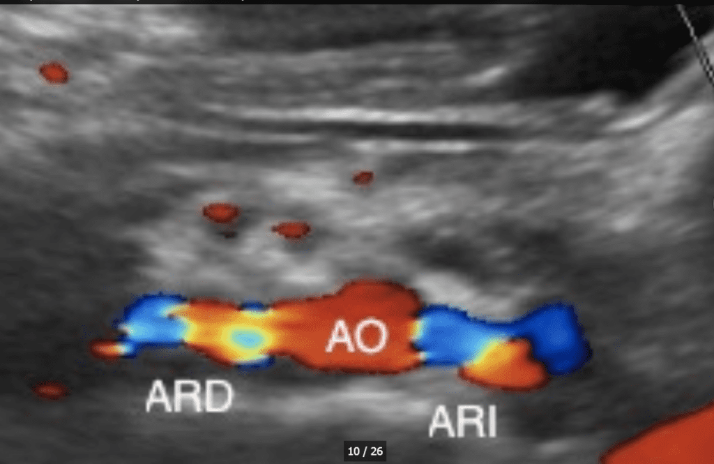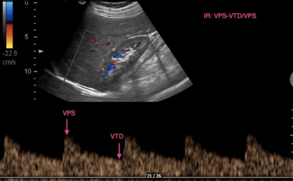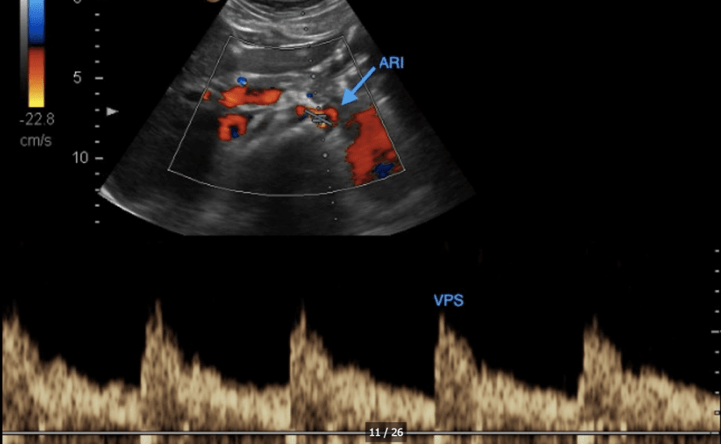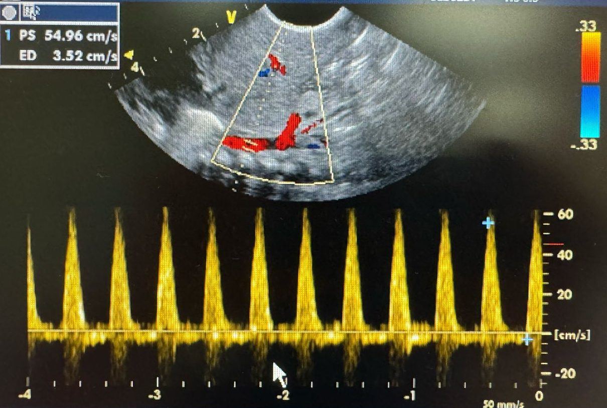 DOPPLER RENAL DE ALTA RESISTENCIA Y FLUJO REVERSO EN UN PACIENTE CON PERSISTENCIA DEL DUCTUS ARTERIOSO CON REPERCUSION HEMODINAMICA.